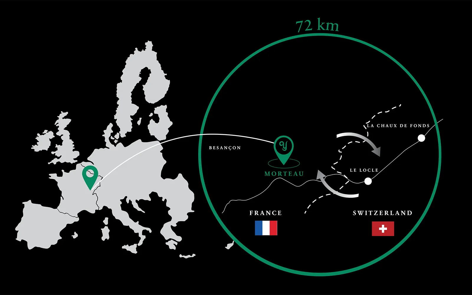 YEMA의 제조 공방은 럭셔리 브랜드가 위치한 스위스 시계 제조 지역과 근접한 프랑스 시계 제조의 요람인 모흐또에 위치해 있습니다. 쥐라 산맥을 따라 형성된 역사적인 프랑스 & 스위스 시계 제조 공동체는 2020년 유네스코가 무형문화유산입니다.