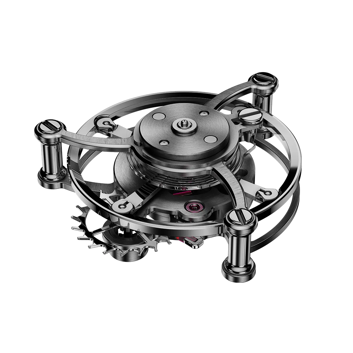 CMM.30 뚜르비옹 이스케이프먼트는 혁신적이고 특히 정교한 제조 공정(LiGA 기술) 덕분에 이러한 마찰을 줄여줍니다. 이 고급 이스케이프먼트는 전체 메커니즘을 최적화하며 무브먼트 구성 요소의 정밀도와 내구성을 높여줍니다.