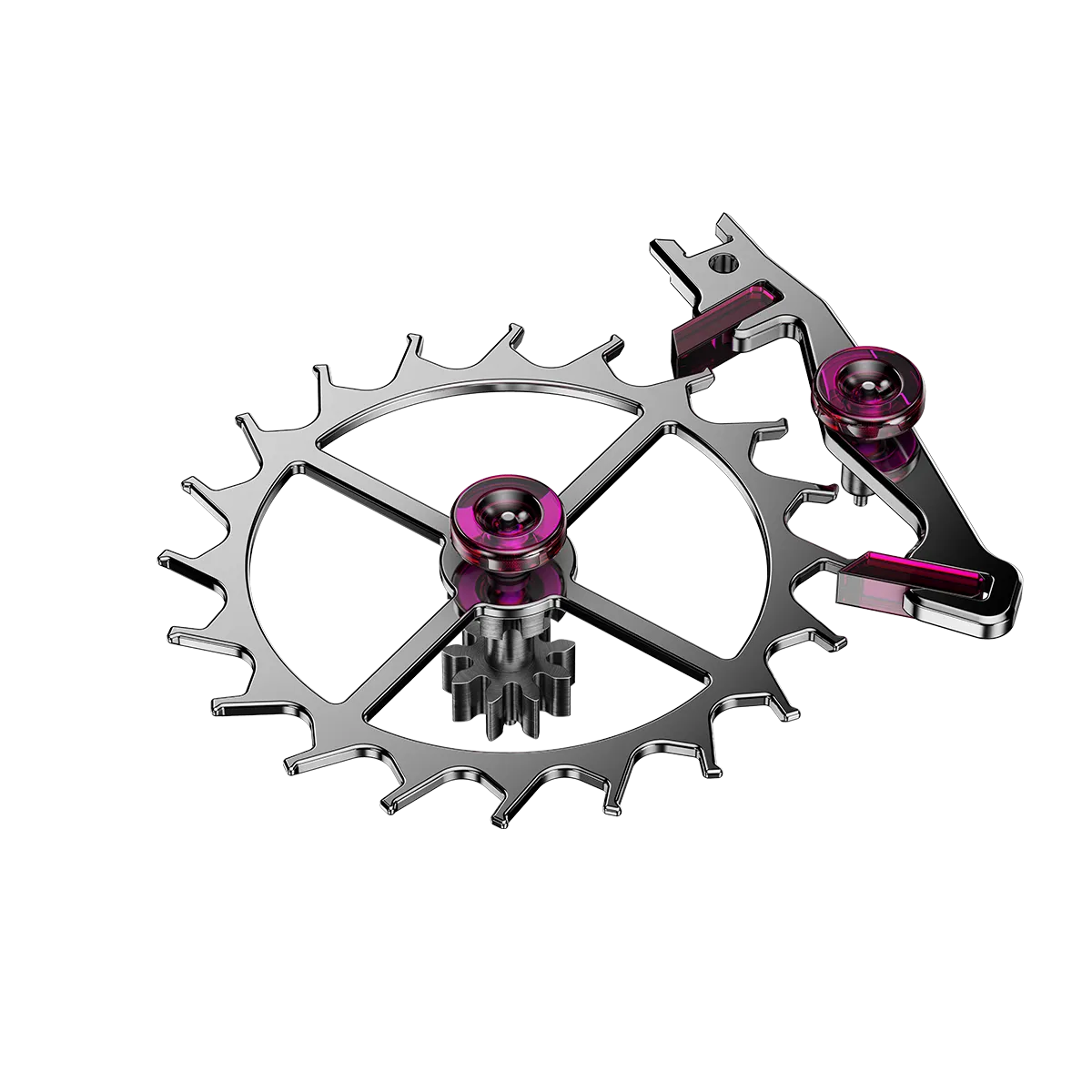 기어 트레인과 레귤레이터 사이에 위치한 이스케이프먼트는 에너지와 크로노미터가 복잡한 상호 작용을 통해 교차하는 장소입니다. 이스케이프먼트는 많은 에너지를 소모하는 시스템으로, 그 자체만으로도 배럴 에너지의 절반 이상을 소비합니다. 특히 이 에너지의 상당 부분을 소산시키는 것은 앵커에 있는 앵커 팔레트의 마찰입니다.