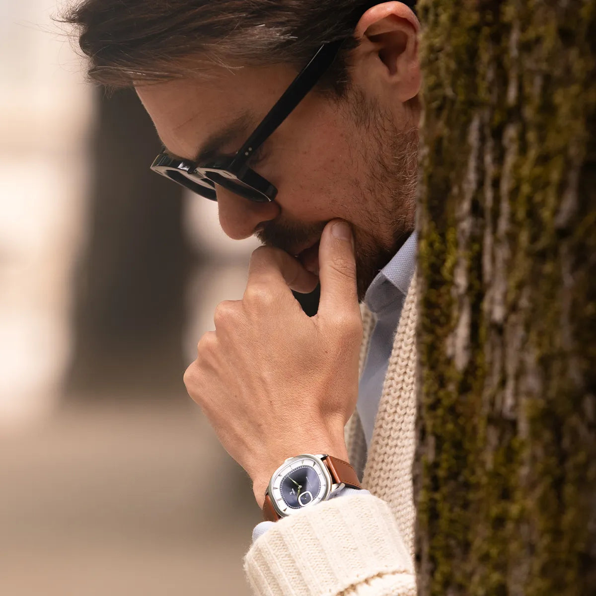 슬림한 도핀 스타일 핸즈는 우아하게 다이얼 위를 미끄러지듯 움직이며, 아워 마커 챕터 링은 텍스처가 풍부한 다이얼을 액자처럼 감싸고 있습니다. 인덱스는 링 메탈에 정교하게 새겨져 있어, 빛과 그림자가 만들어내는 미묘한 반사 효과를 통해 시계에 조용한 세련미를 더합니다. 이 모든 요소들이 어우러져 시간의 흐름마저 하나의 ‘연출된 경험’처럼 느껴지게 만드는 다이얼을 완성합니다.