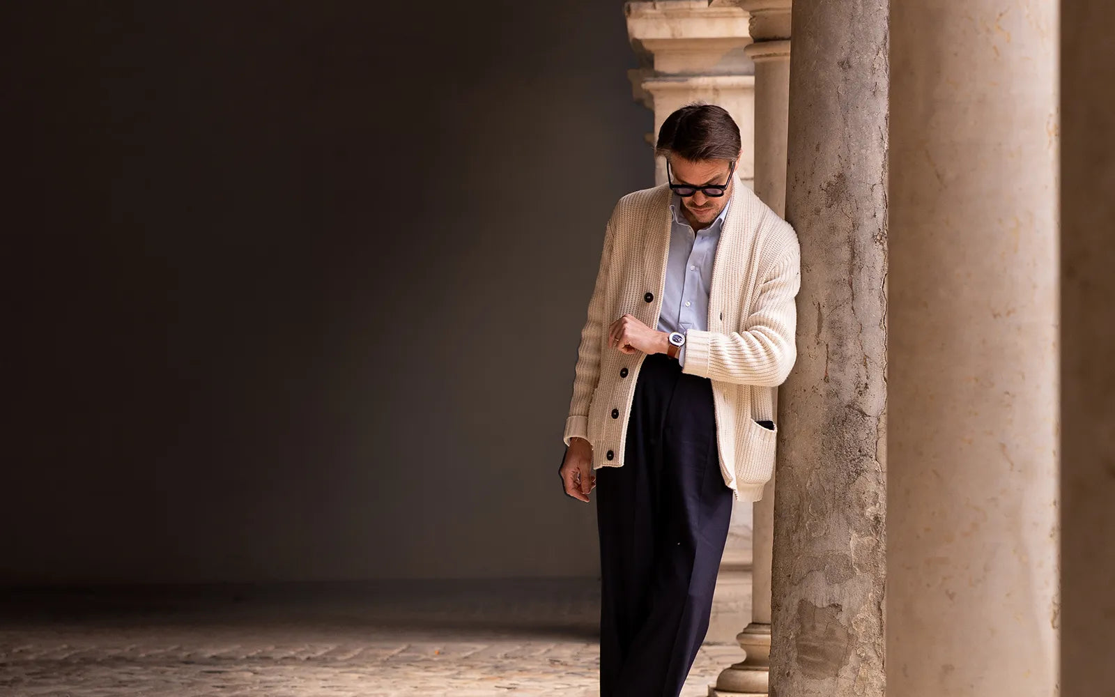 로만 피자넬리(Romain Pizzanelli) 프랑스 테일러링 하우스 Blandin & Delloye의 어소시에이트 파트너이자 맞춤 수트 컨설턴트로, 시대를 초월한 워치메이킹과 프렌치 엘레강스가 만나는 정수를 완벽하게 구현하는 인물입니다. 이탈리아 혈통이지만 프랑스에서 태어난 그는 어린 시절부터 장인정신, 특히 맞춤복에 대한 열정을 키워왔습니다. 시간이 흐르며 워치메이킹에 대한 사랑도 자연스럽게 깊어져, 그의 정제된 워드로브와 조화를 이루게 되었습니다.