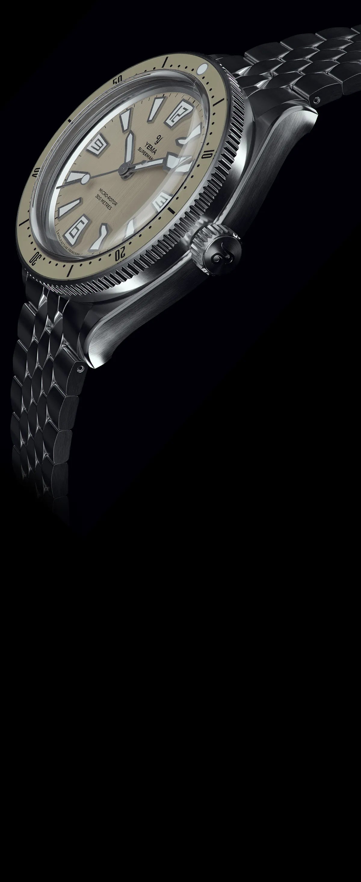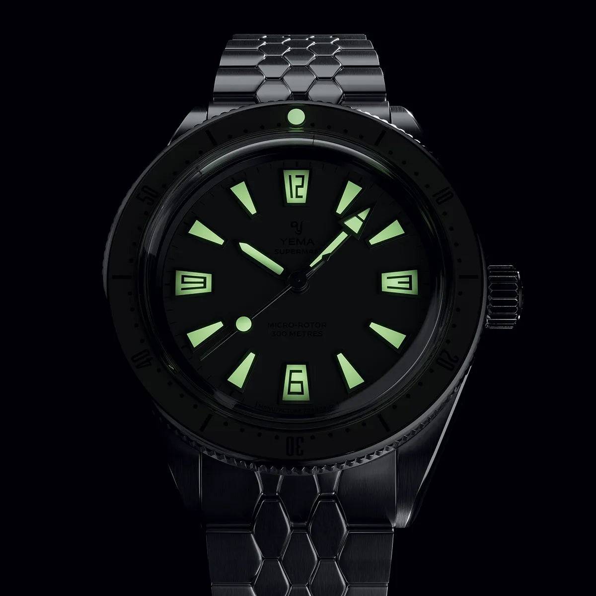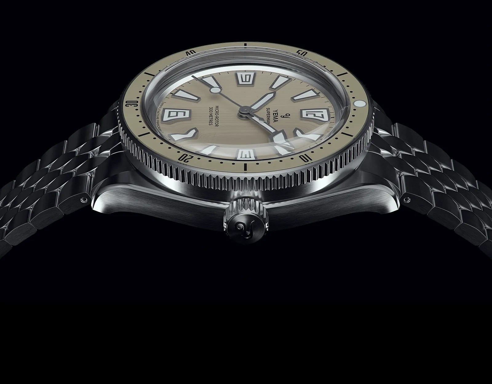 1960년대의 상징적인 YEMA 스케일 브레이슬릿은 0.40mm 얇아져 스킨 다이버와 조화를 이루도록 디자인되었습니다.