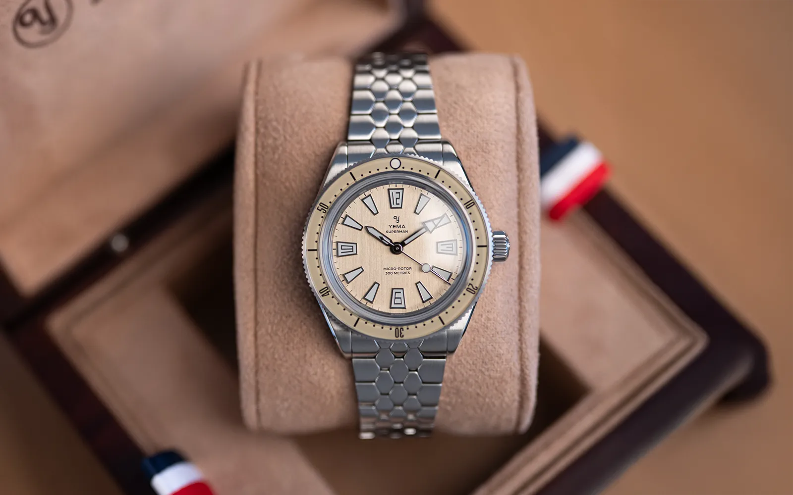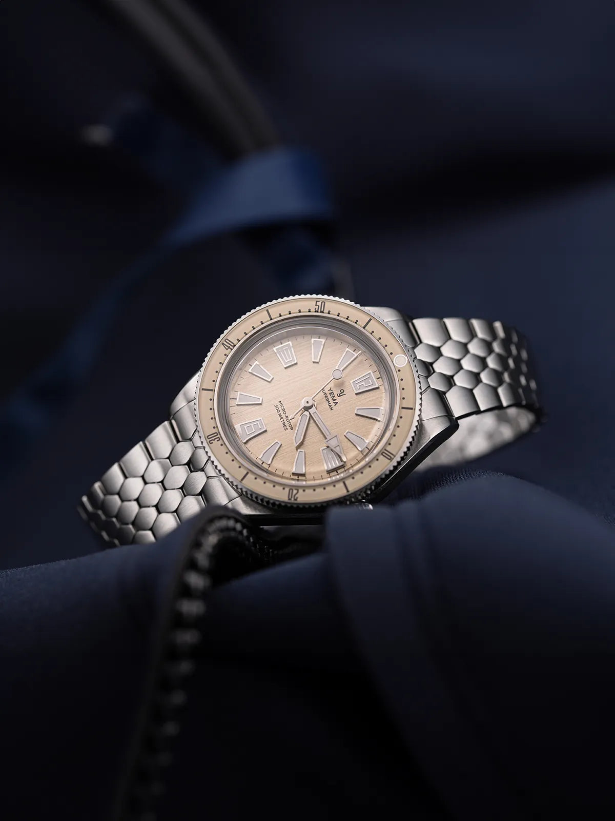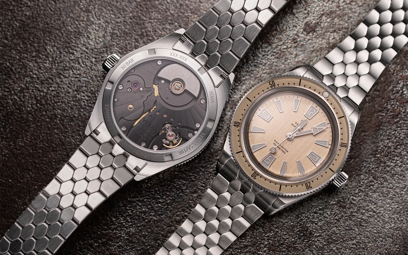 1960년대의 상징적인 YEMA 스케일 브레이슬릿은 0.40mm 얇아져 스킨 다이버와 조화를 이루도록 디자인되었습니다.