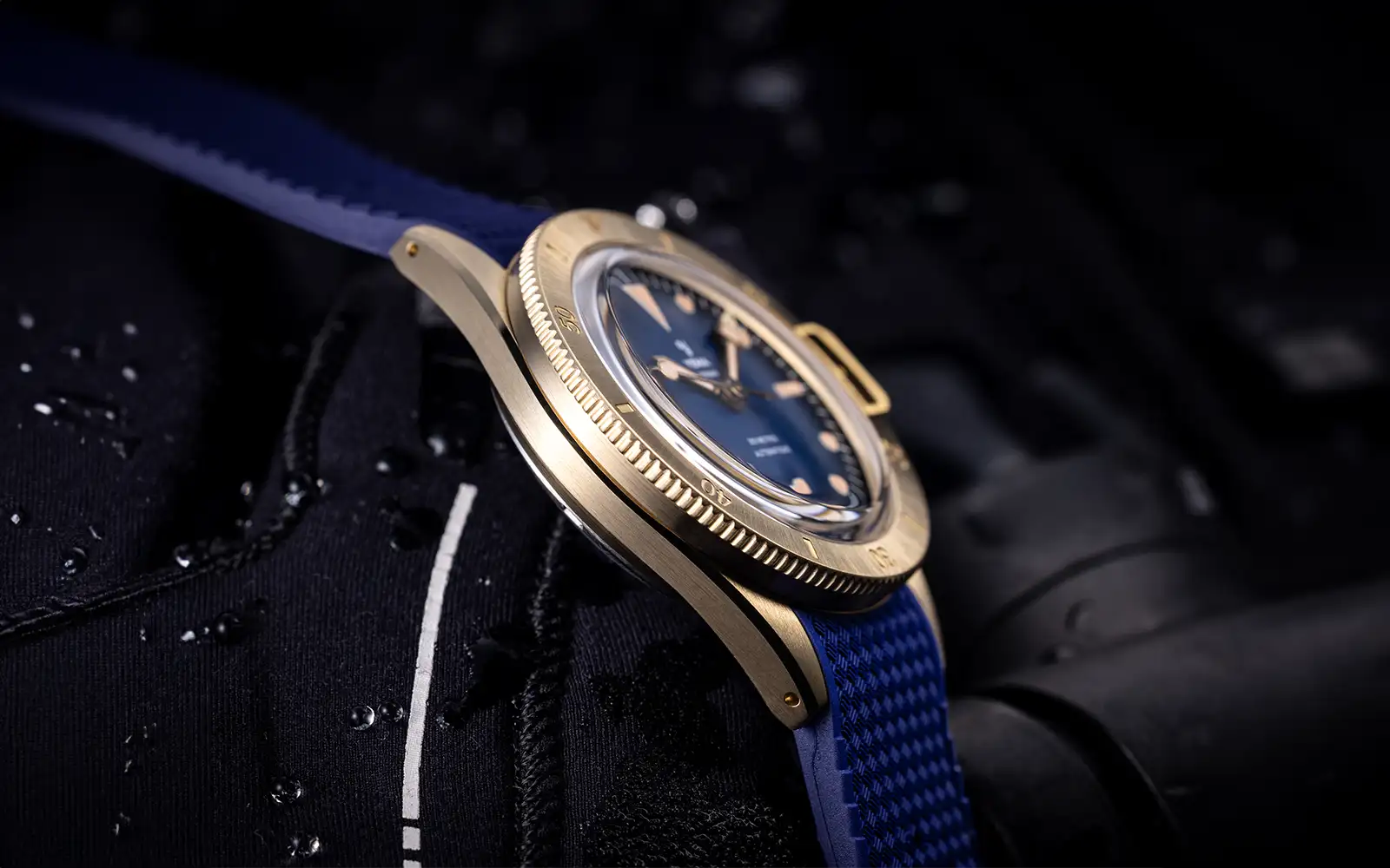 전문 다이버를 위해 디자인된 이 새로운 브론즈 케이스는 39mm와 41mm로 제공되며, 독특한 네오 빈티지 외관을 유지하는 고품질 브러시/광택 마감이 적용되어 있습니다. 브론즈는 용도와 기상 조건에 대한 노출에 따라 파티나(녹청)가 다르게 변해 각 시계를 독특한 모습으로 만들어 줍니다.
