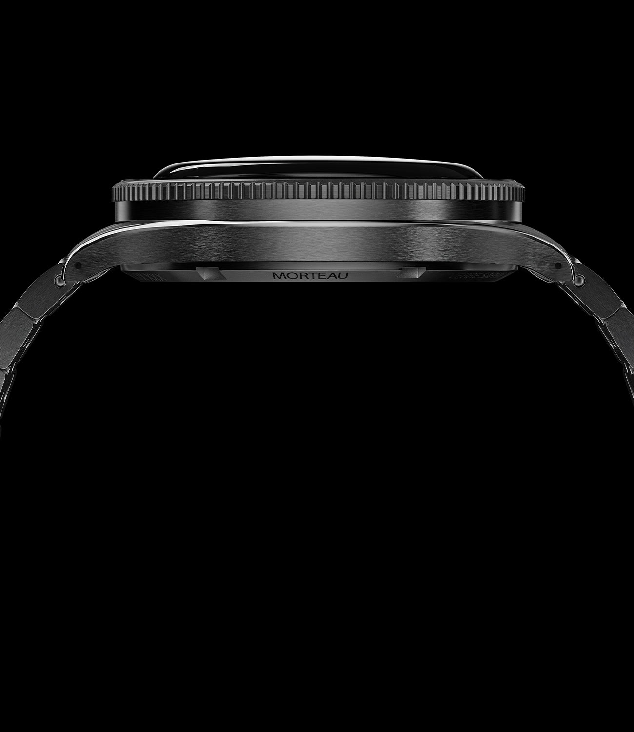 전문 다이빙 시계로 제작된 스틸 케이스는 CMM.20 마이크로 무브먼트를 장착하면서 1mm 더 슬림해졌습니다. 또한, 사파이어 디스플레이 케이스백과 스크류 다운 타입의 용두로 인해 30기압의 방수 기능을 제공합니다.