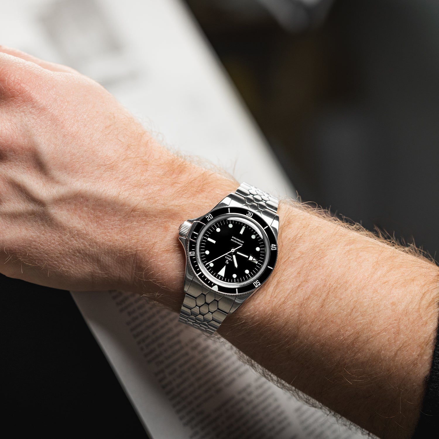 슈퍼맨 슬림은 현대적 기계식 다이빙 시계의 모든 장점과 기능을 유지하면서 우아하고 세련된 디자인을 제공합니다.