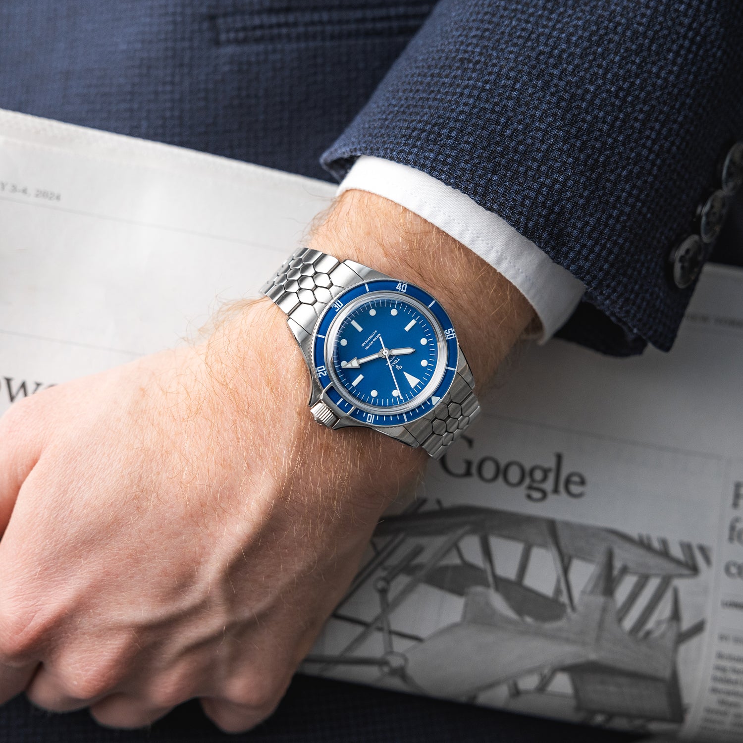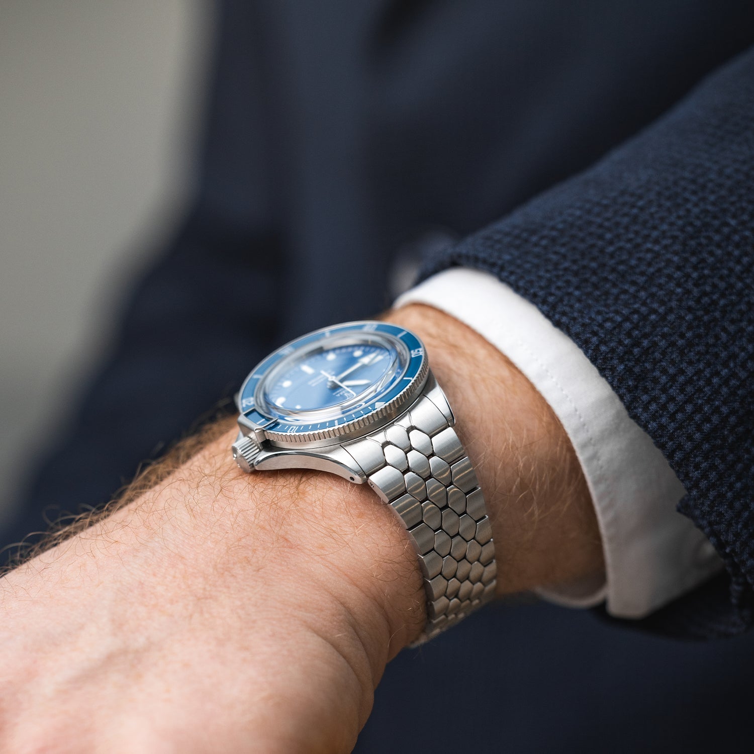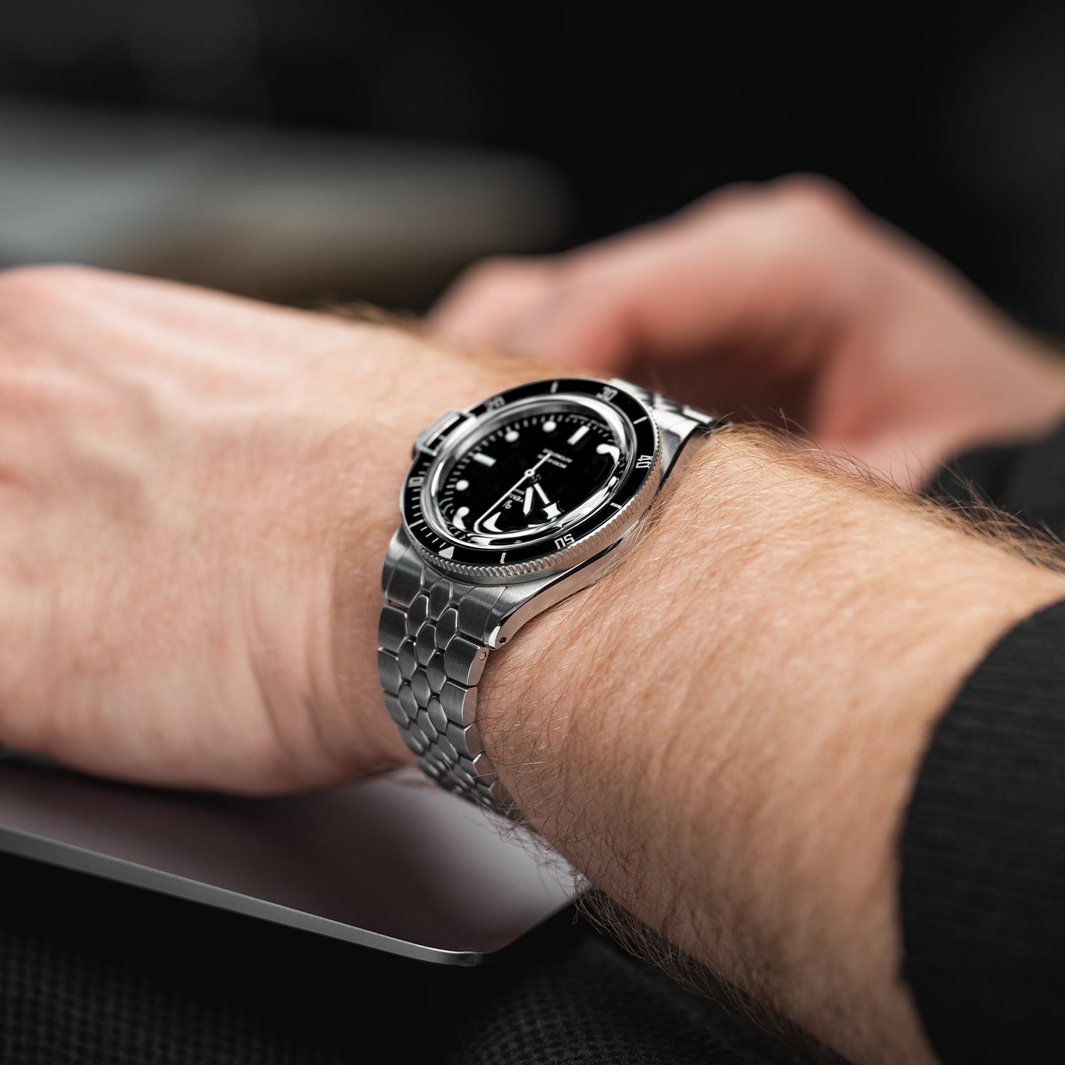 기존의 슈퍼맨 모델을 더 슬림하게 해석한 이 모델은 다양한 착용자의 손목에 편안함을 제공하며 클래식한 룩에도 더 세련된 느낌을 제공합니다.