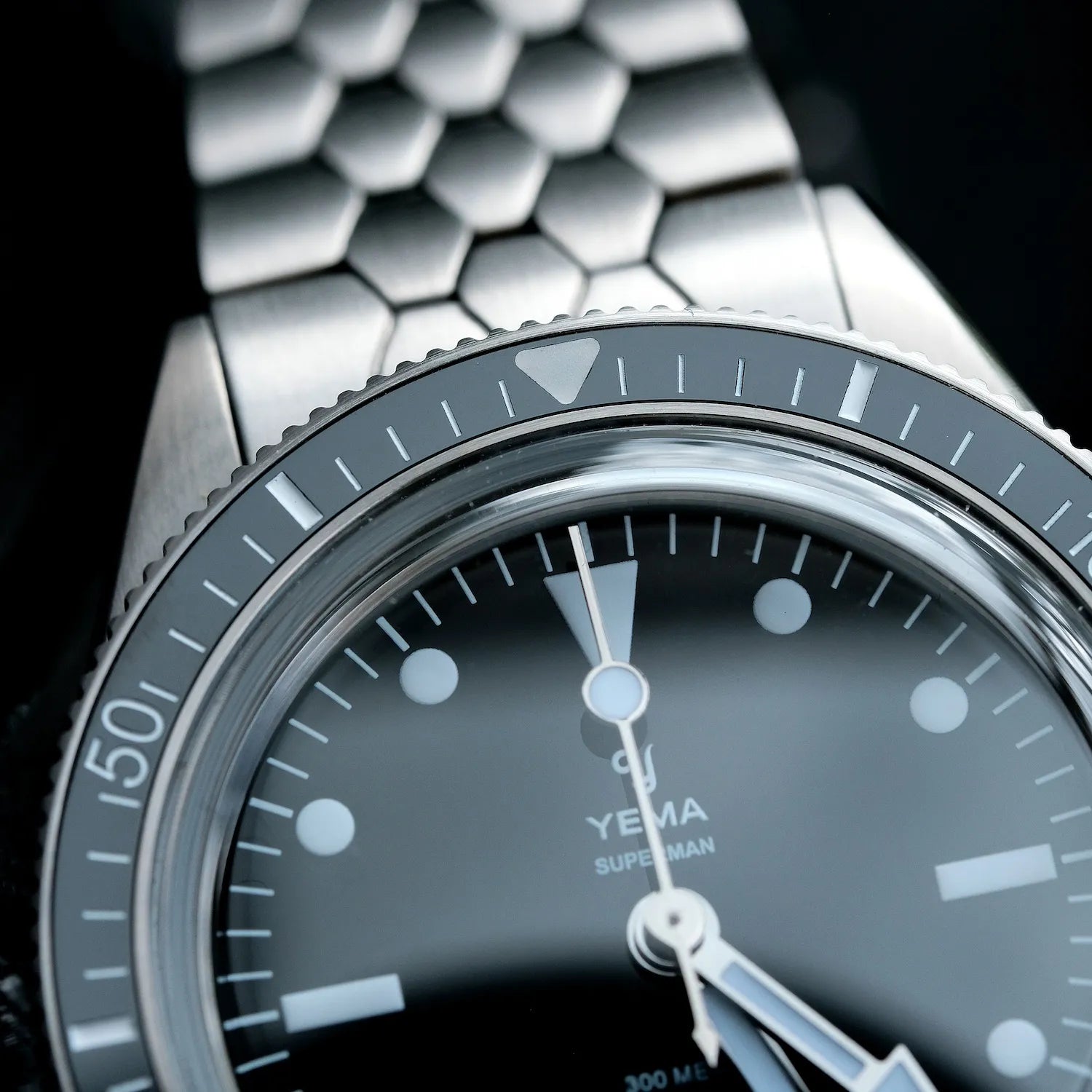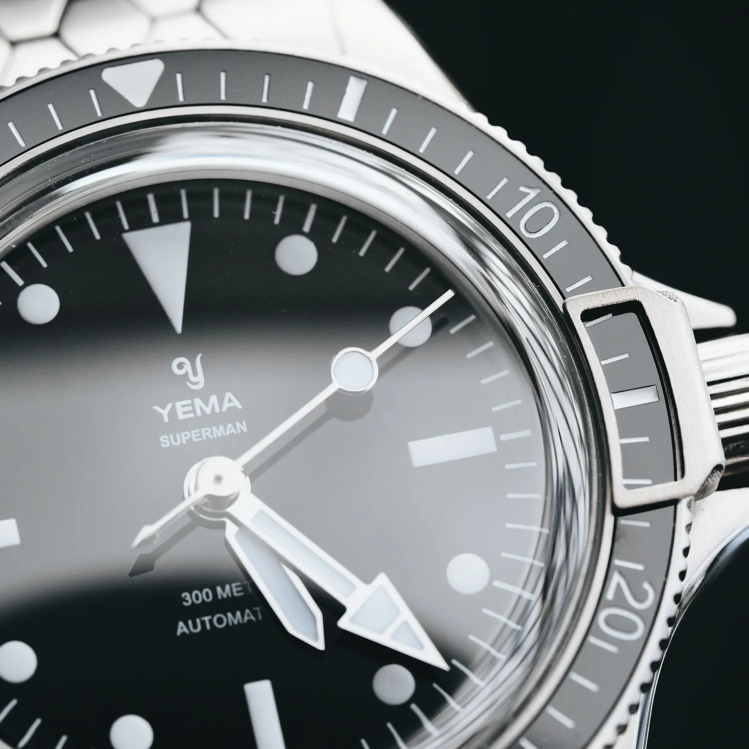 상징적인 1960년대 YEMA 스케일(Scale) 브레이슬릿은 슈퍼맨 스틸 CMM.10의 세련된 케이스와 조화를 이루도록 0.40mm 더 슬림해졌습니다.
