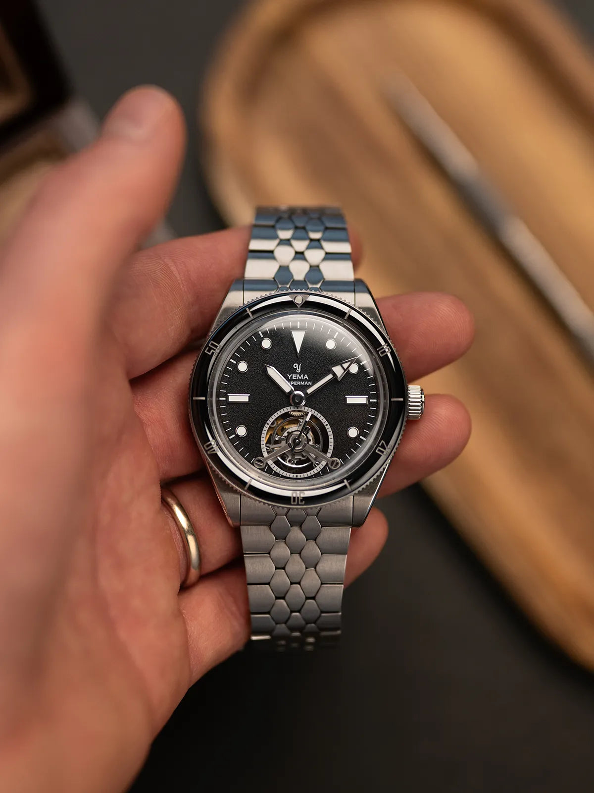 대부분의 투르비용이 섬세한 워치메이킹 아트피스로 제작되어 실사용에는 제한적인 것과 달리, 이 모델은 일상적으로 착용할 수 있는 가장 희귀한 투르비용 중 하나입니다. 고급스러움과 정교함은 물론 견고함과 실용성까지 겸비한 럭셔리 툴 워치—YEMA의 유산을 잇는 진정한 툴 워치라 할 수 있습니다.”