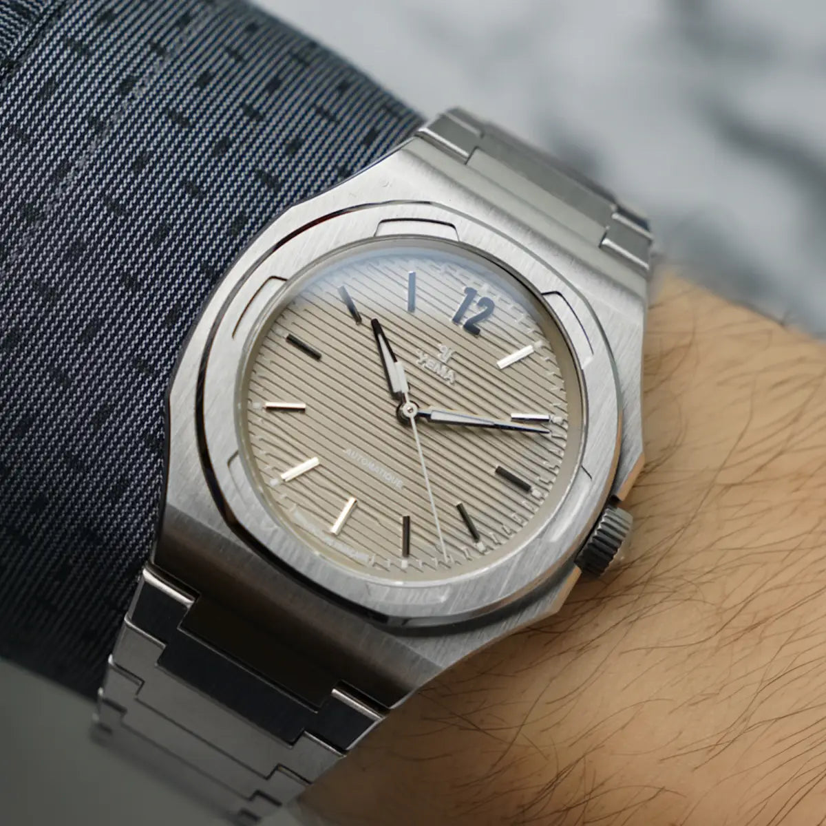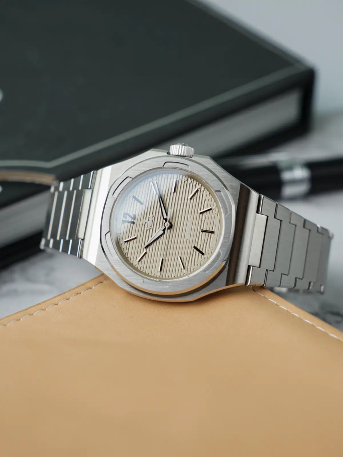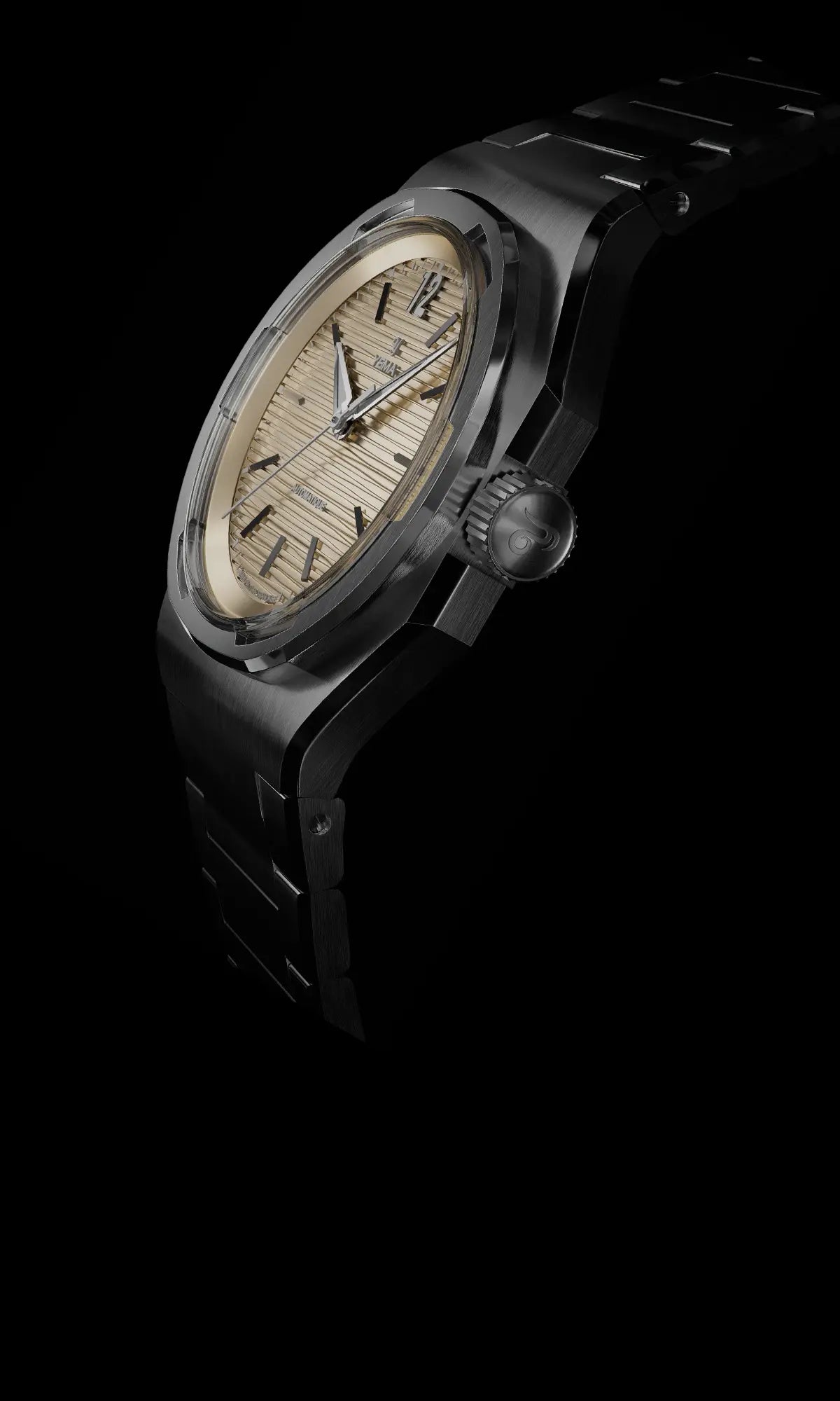YEMA의 아이코닉한 일체형 모델인 리스트마스터가 디스플레이 케이스백을 장착하여 유니크한 새로운 마이크로 로터 무브먼트를 보여줍니다. 스트라이프 다이얼을 갖춘 이 모델은 슬린한 두께로 압도적인 편안함을 제공하며, 모던한 디자인으로 어떠한 의상과도 완벽한 조와를 이룹니다.