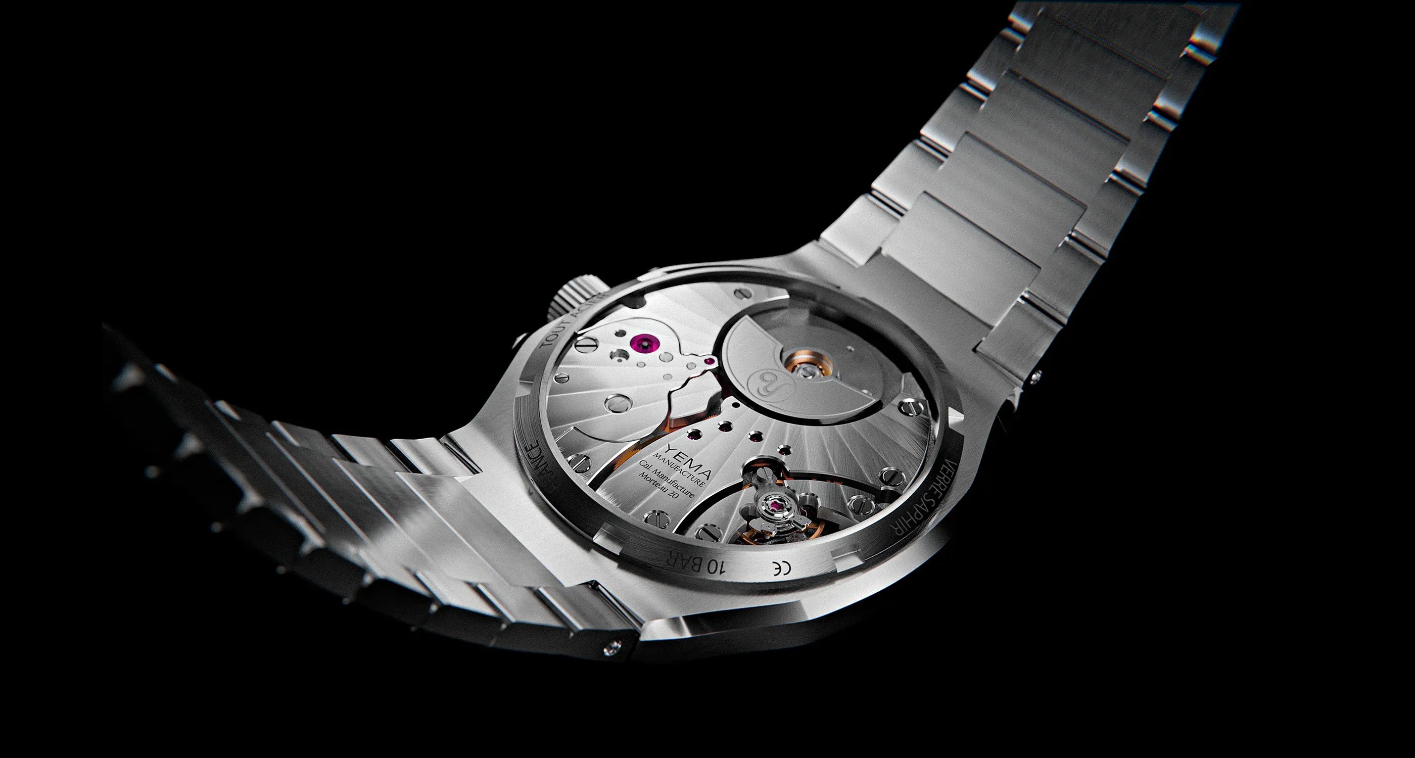 무브먼트의 모든 부품은 프랑스 모흐또 72km 이내의 프랑스와 스위스에서 인정받는 고급 시계 제조 장인에 의해 제작됩니다. 모든 구성요소가 최종적으로 조립되는 무브먼트 브릿지와 메인 플레이트는 YEMA의 모흐또 공방에서 제작됩니다.
