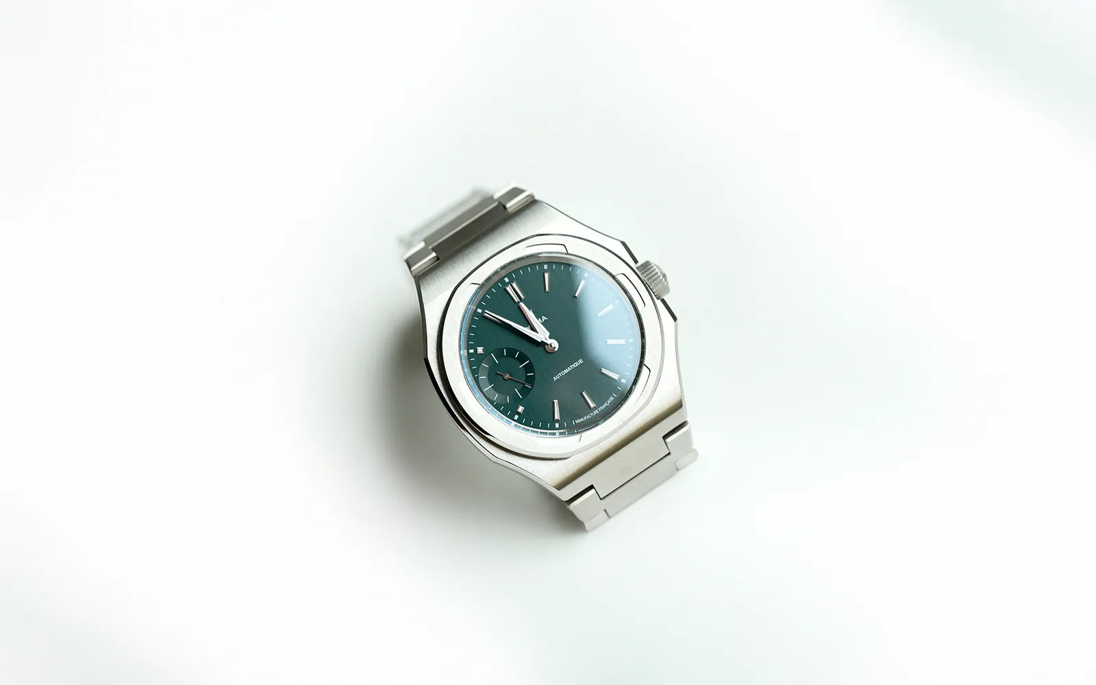 39mm 스틸 케이스는 비대칭 팔각형 형태를 띠고 있습니다. 우리는 복합적인 케이스 구조를 최대한 활용하여, 모든 각도를 동일한 교차 브러시드-폴리시드 마감으로 마무리했습니다. 이로 인해 시선을 사로잡는 우아함과 독창성이 케이스에 부여되면서도, 뚜렷한 스포츠 감각은 그대로 유지됩니다.