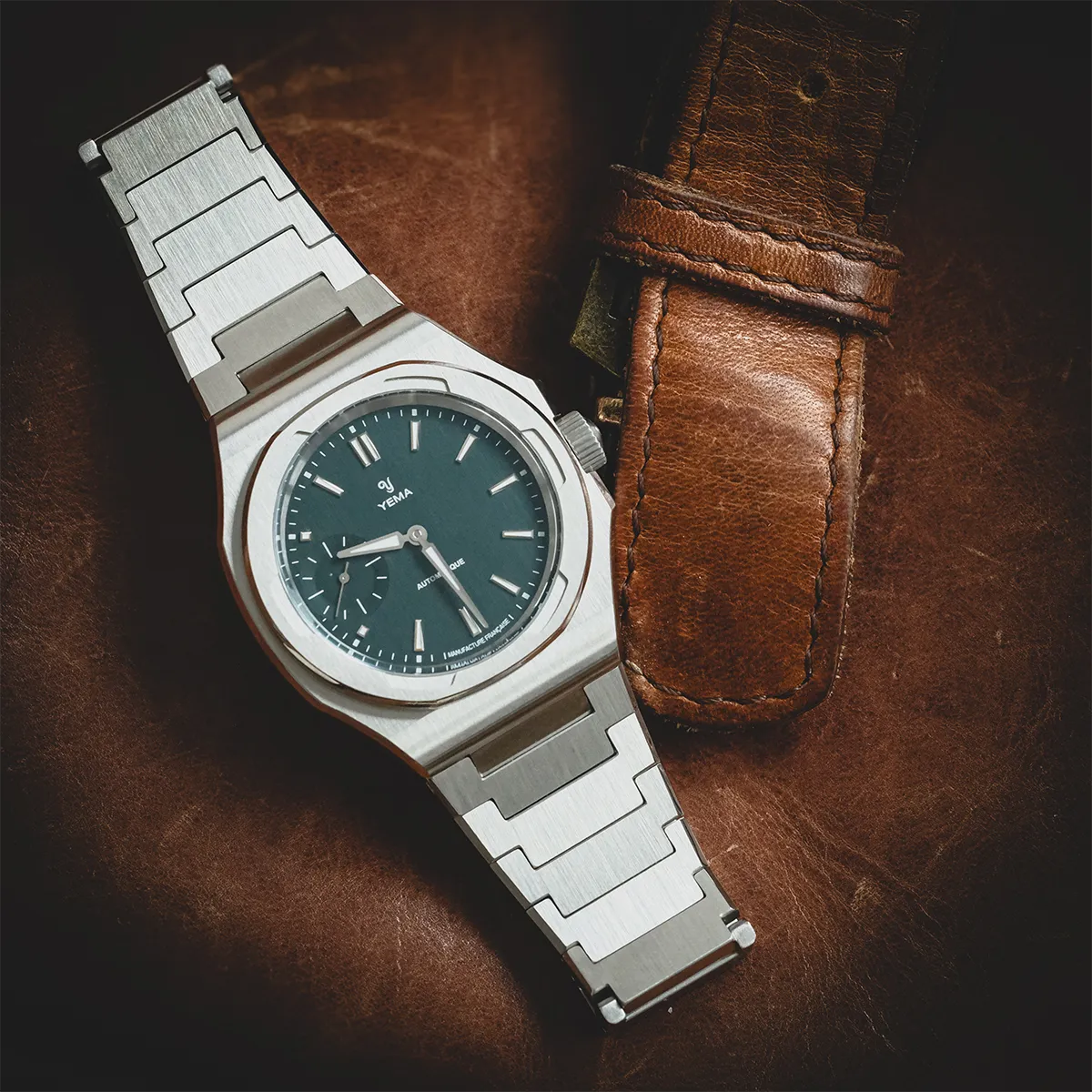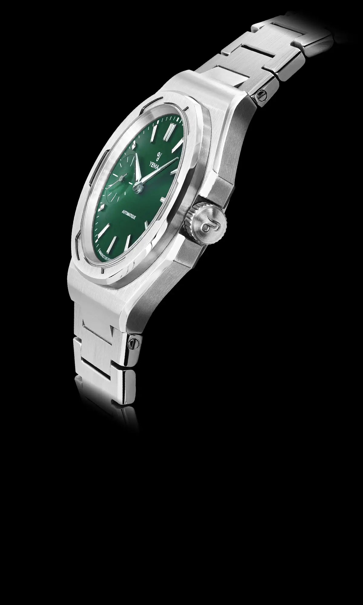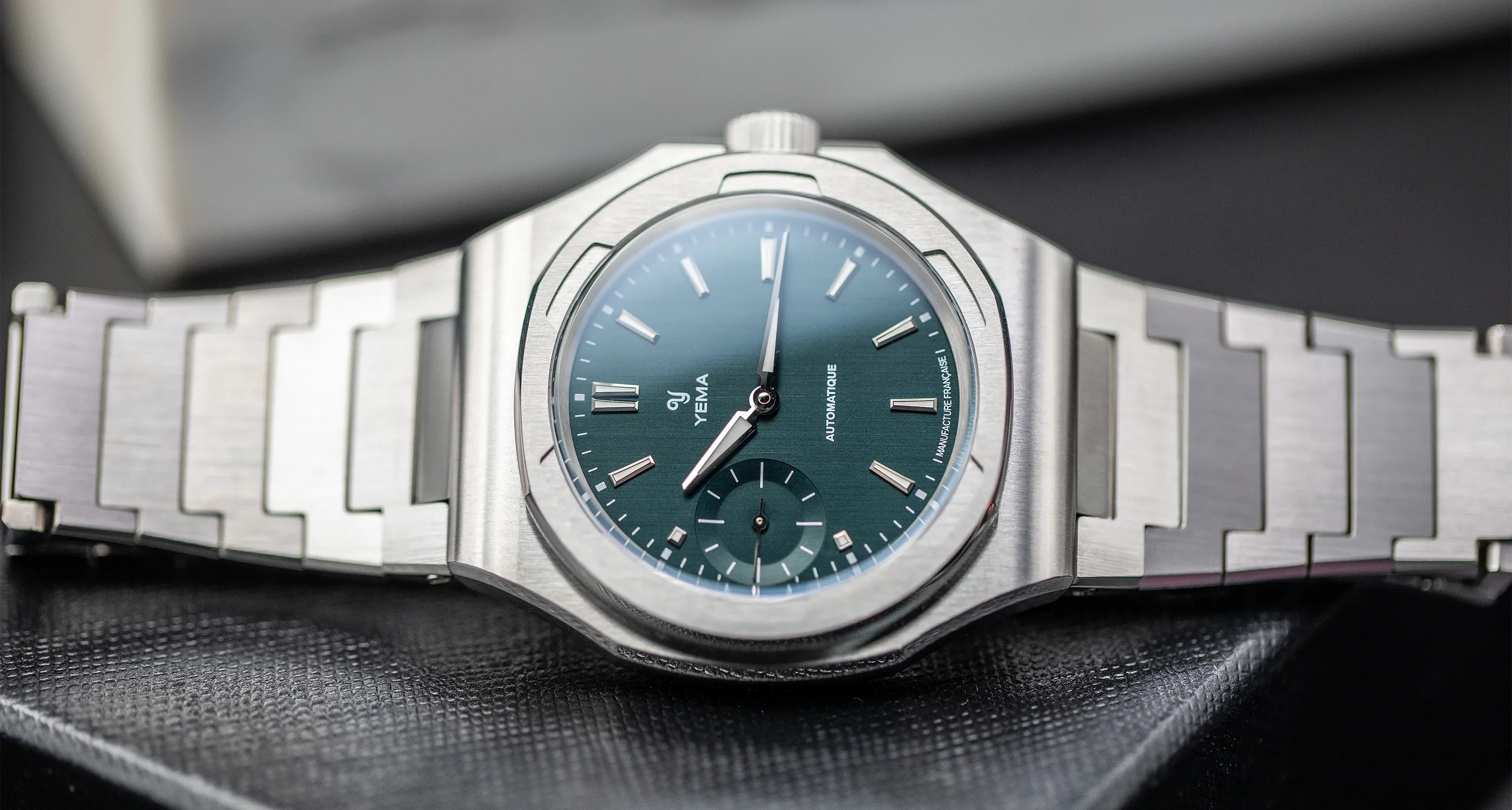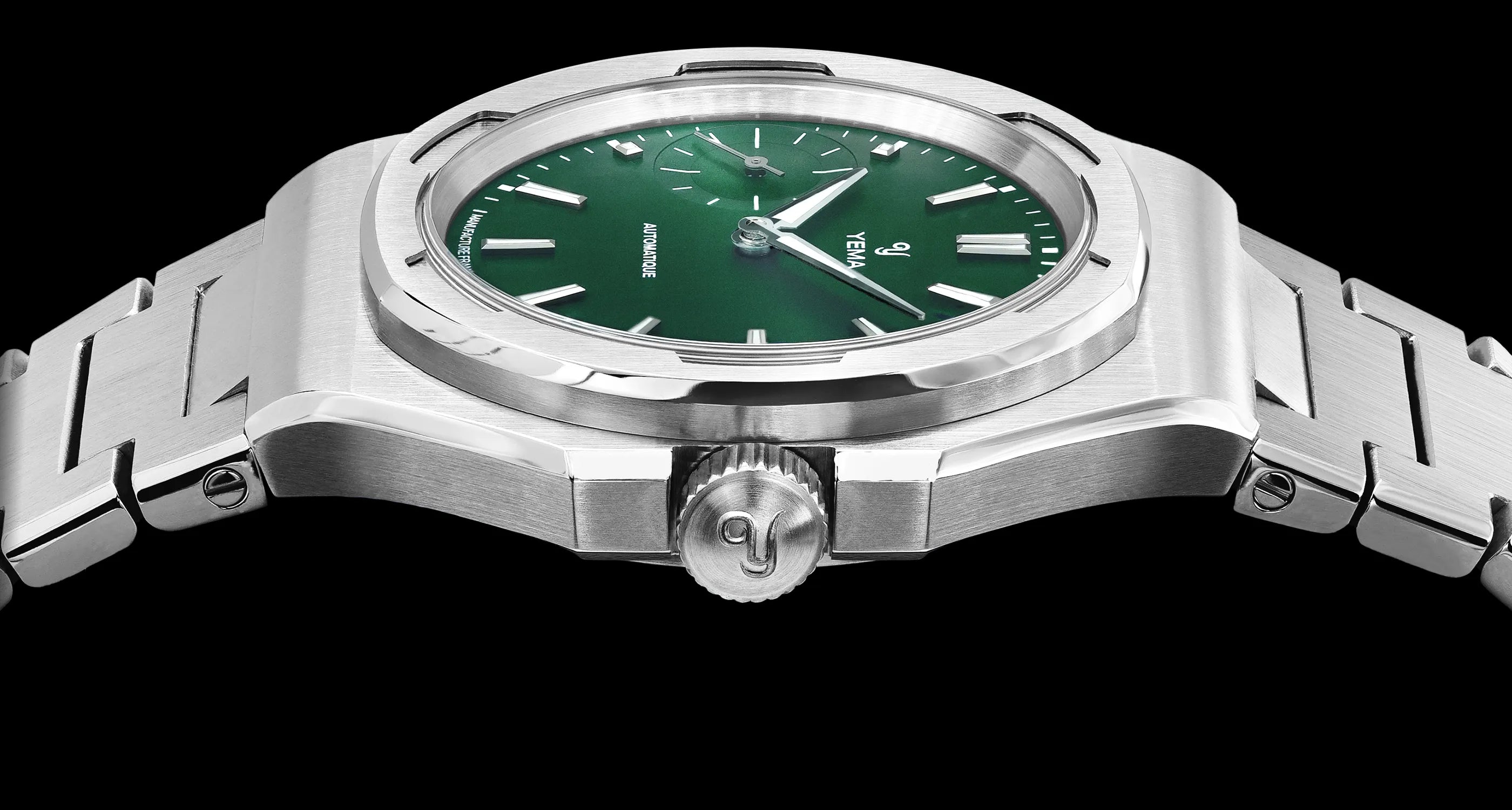 이 새로운 베젤은 1980년대 YEMA Sous-Marine 모델에서 영감을 받았으며, 단일 스테인리스 스틸로 제작되었음에도 세 가지 뚜렷한 마감을 자랑합니다. 상단과 하단의 베벨에는 세련된 수직 브러싱이 적용되었고, 베젤의 수평면과 수직면이 만나는 부분은 완전히 폴리싱 처리되어 우아한 전환을 보여줍니다.