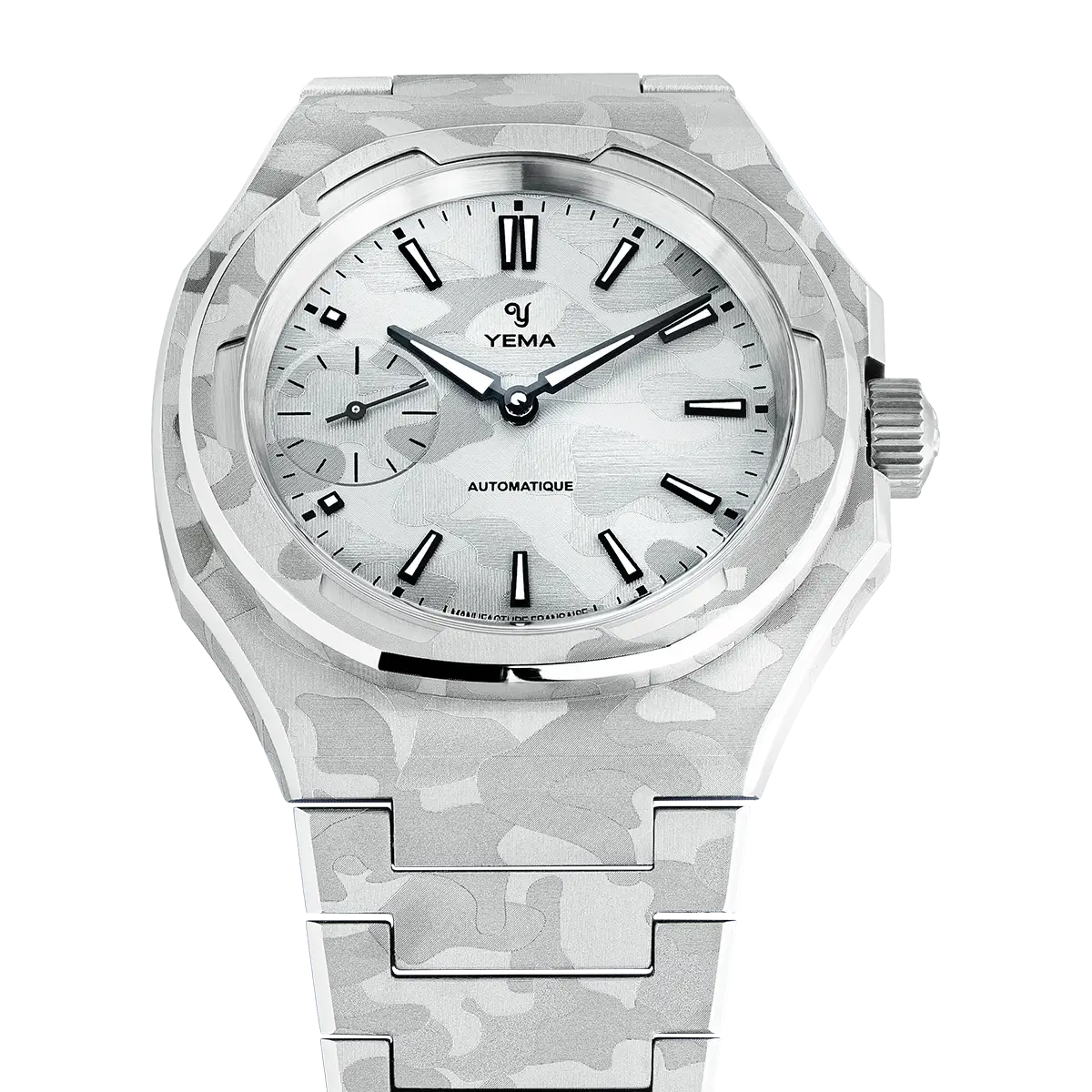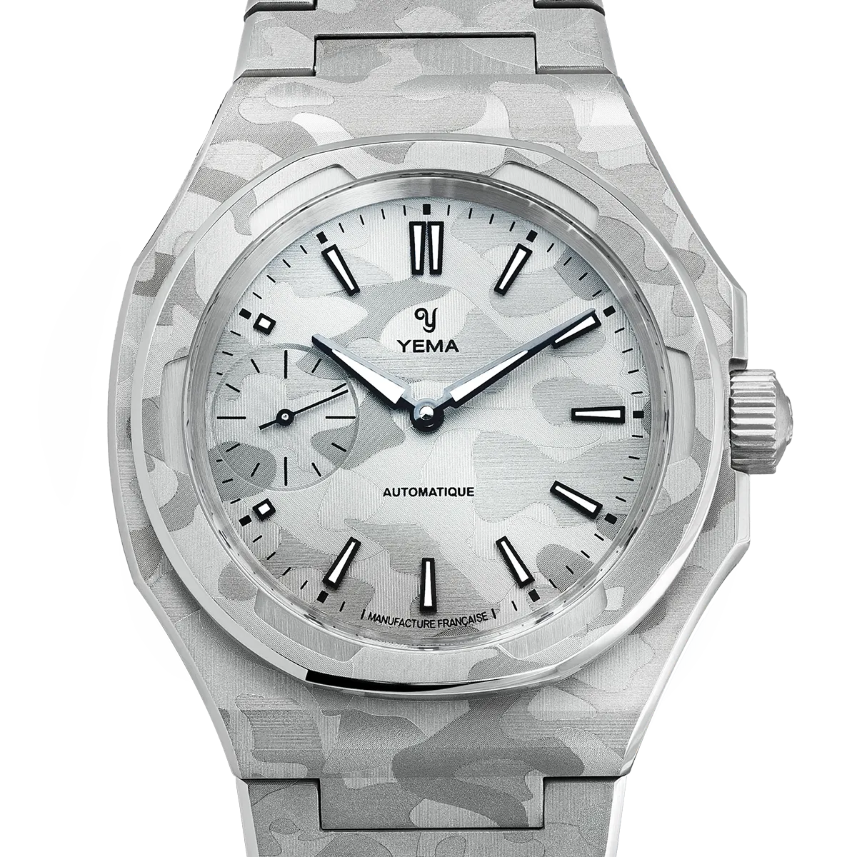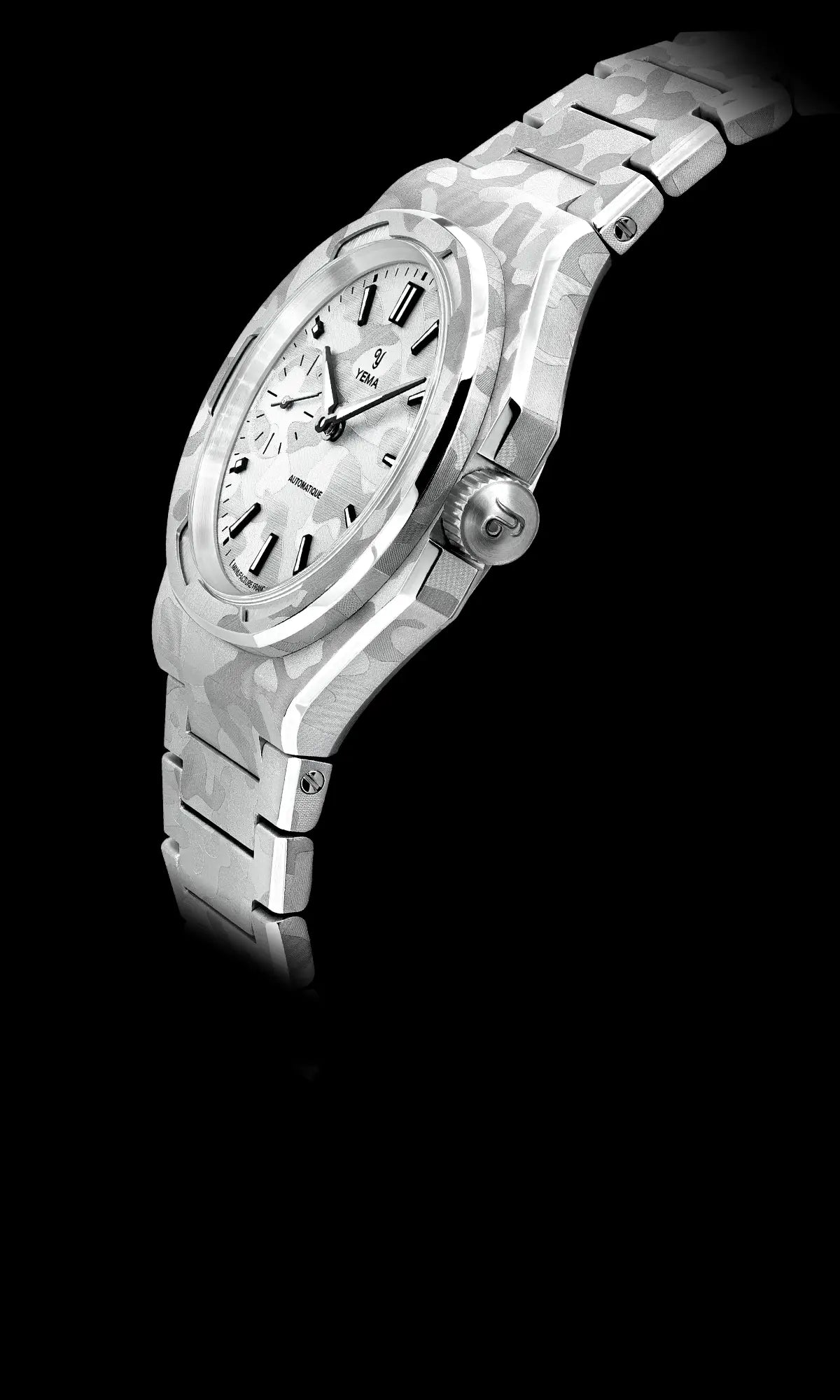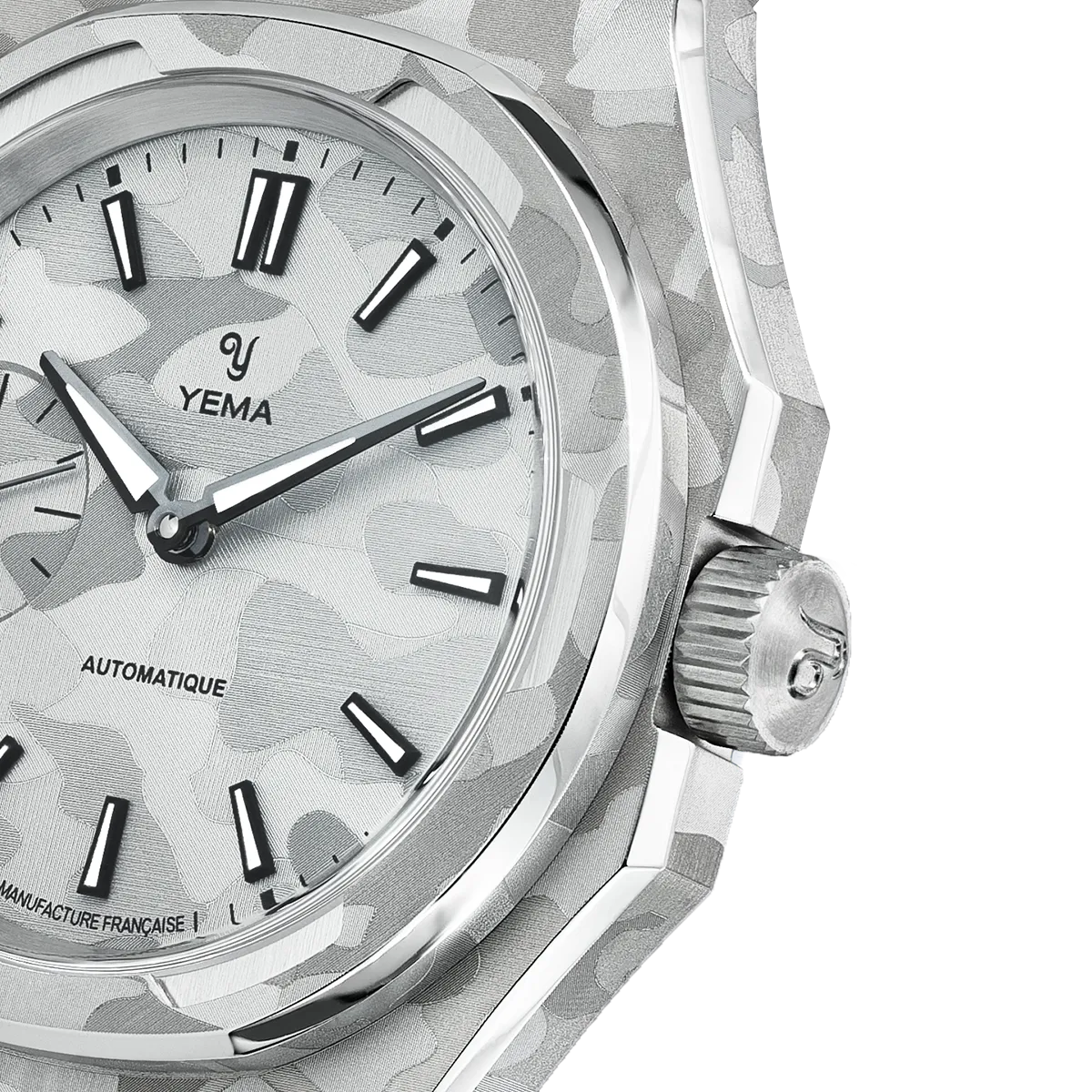 통합 브레이슬릿을 갖춘 YEMA의 아이콘, 위스트마스터가 “스노우 카모” 피니시로 그 어느 때보다 예술적인 모습으로 돌아왔습니다. 초슬림 케이스 안에는 매뉴팩처 CMM.29 마이크로 로터 칼리버가 탑재되어 있으며, 사파이어 케이스백을 통해 선레이 장식을 감상할 수 있습니다. 완전히 재설계되고 스타일링된 다이얼은 은은하게 균형 잡힌 스몰 세컨즈의 추가로 더욱 돋보입니다.