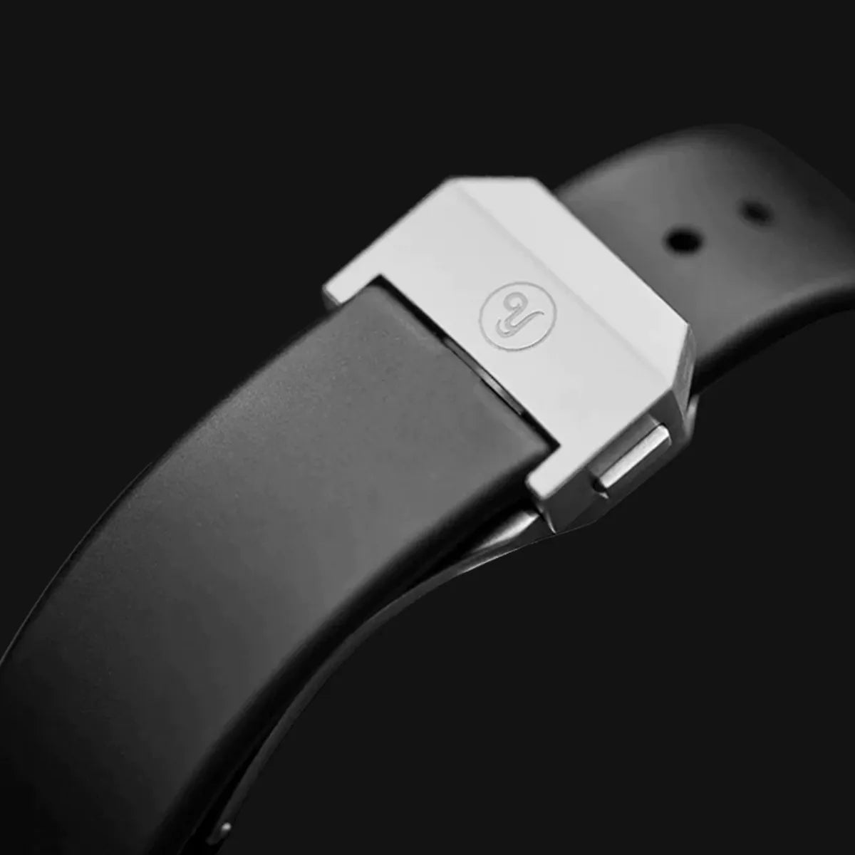 프리미엄 품질의 FKM Viton® 러버로 제작되어 최고의 내구성을 제공하는 동시에 쉽게 유연하며 먼지 방지에 뛰어납니다. 브러시 마감 처리된 스테인리스 스틸과 브론즈 IP코팅으로 제공되는 우아버클은 스타일과 편안함을 더해줍니다.