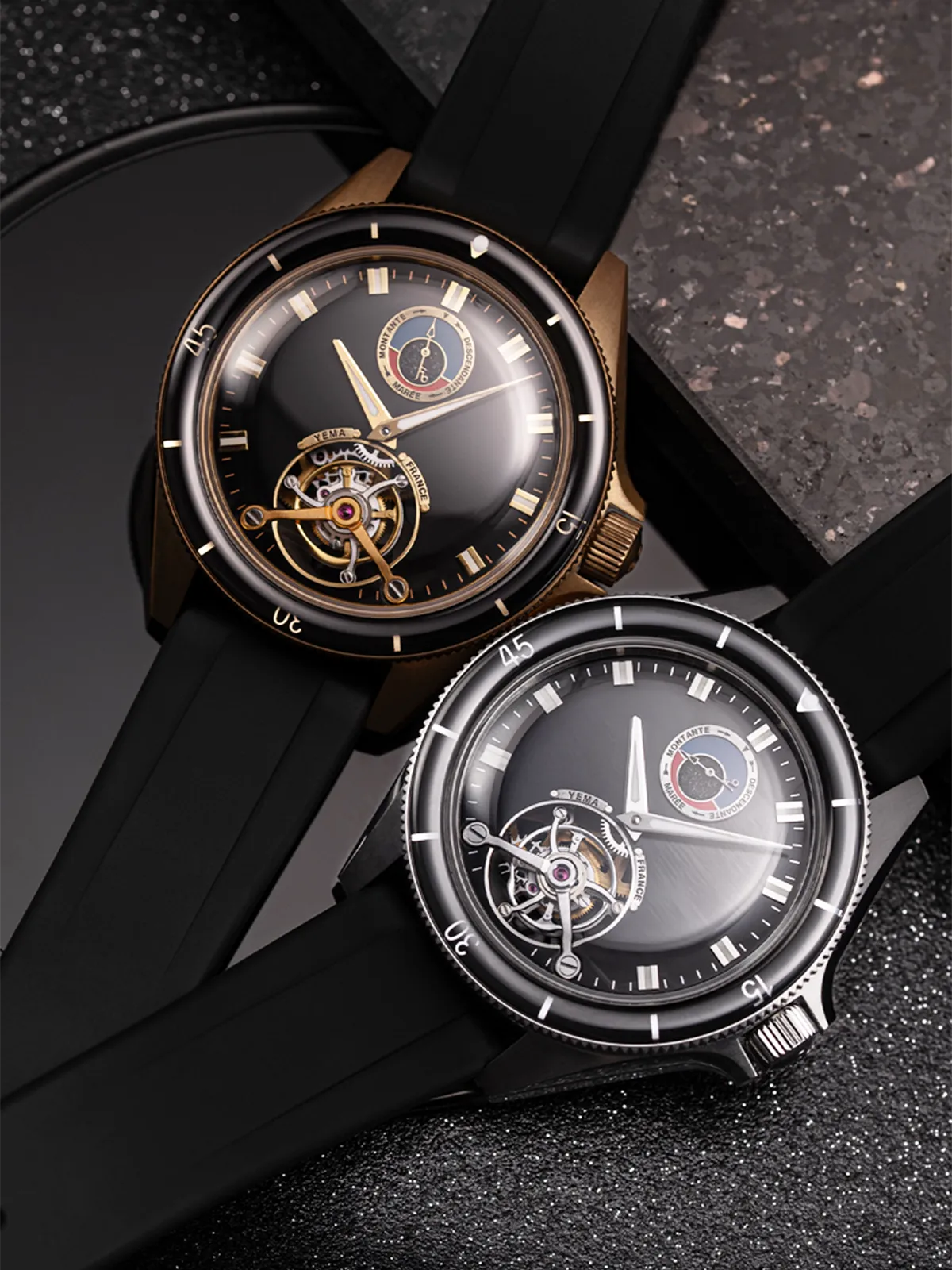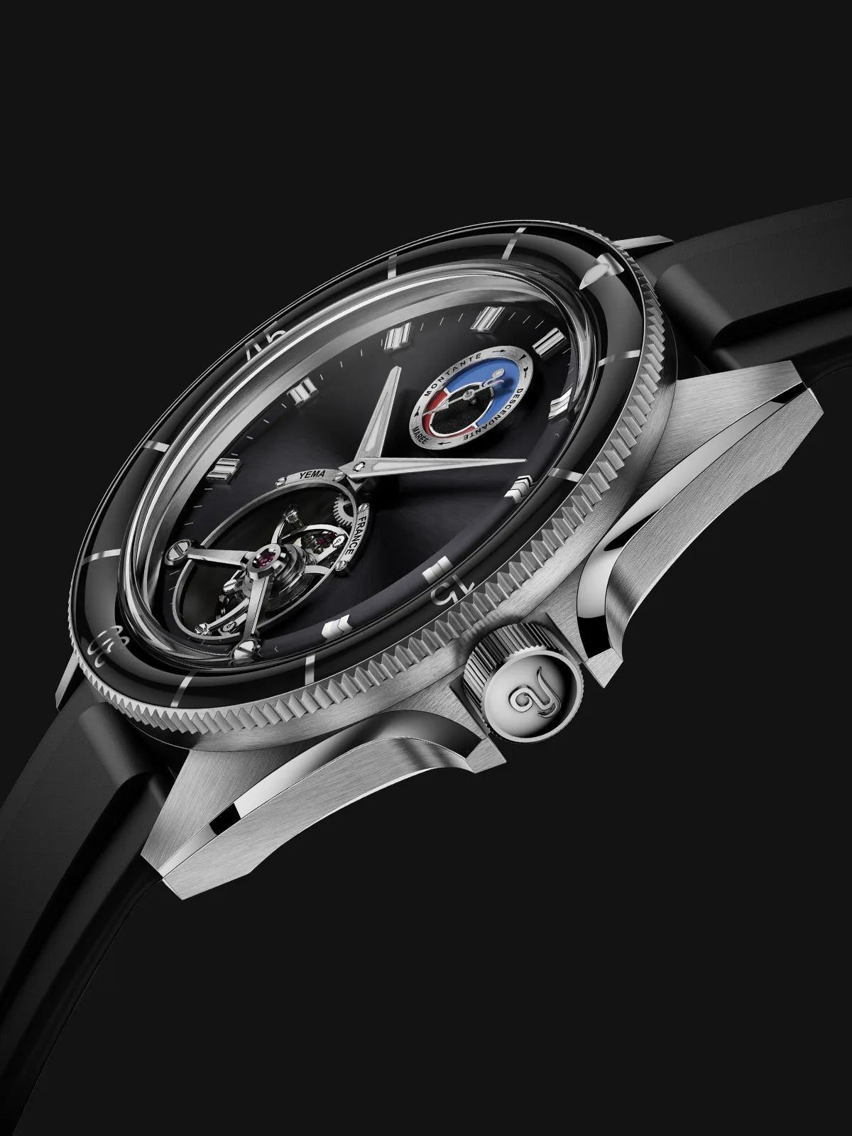 YEMA 워크샵이 위치한 프랑스 모흐또와 스위스를 가로지르는 쥐라 산맥의 기업들과 제작된 이 스페셜 에디션은 스테인리스 스틸 및 브론즈 에디션으로 제공되며 각각 75개 한정 판매됩니다. YEMA의 75주년을 기념함과 동시에 YEMA의 발전을 기념하는 시계입니다.