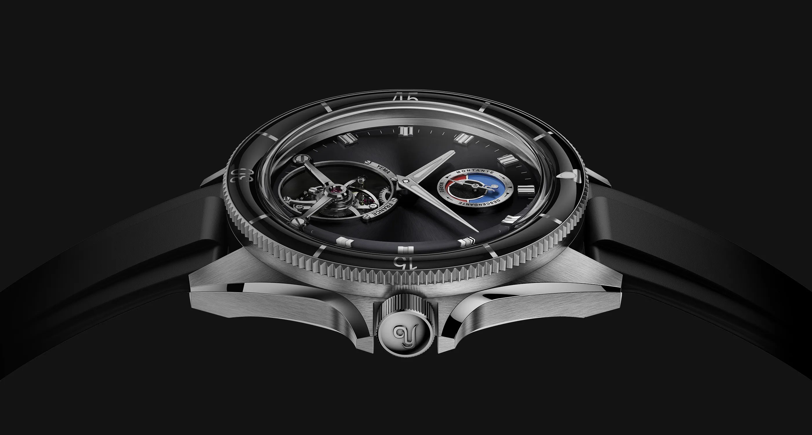 대부분의 뚜르비옹 시계는 하나의 예술로 취급받기 때문에 툴 워치 능이 결합된 모델은 몹시 희귀합니다. 이 모델은 일상 생활용을 위해 제작된 독특한 투르비옹 중 하나로, 아름답고 세련된 디자인을 보여주면서 견고하고 기능적인 럭셔리 시계입니다."