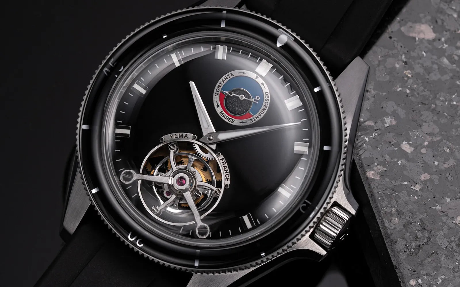 다이얼은 1970년대 아이코닉한 요팅그래프 모델의 미적 코드에서 영감을 얻었습니다. 슈퍼 루미노바로 야광처리된 인덱스와 고품질의 선레이 블랙 다이얼 그리고 레가타 스타일의 요팅그래프 빈티지 모델을 연상시키는 컬러풀한 마레오그래프 레지스터가 특징입니다. 조수 시간을 보여주는 컴플리케이션에는 YEMA 로고가 우아하게 장식 핸즈가 장착되어 미적 완성도를 만들어냅니다. 오픈 다이얼 부분으로 볼 수 있는 뚜르비옹의 움직인은 기계식 무브먼트의 예술 작품을 보여주며, 착용자에게 역동적인 광경을 선사합니다.